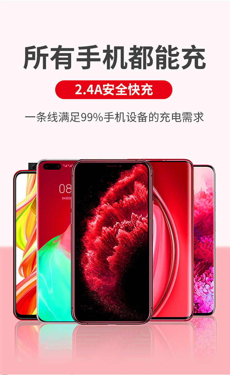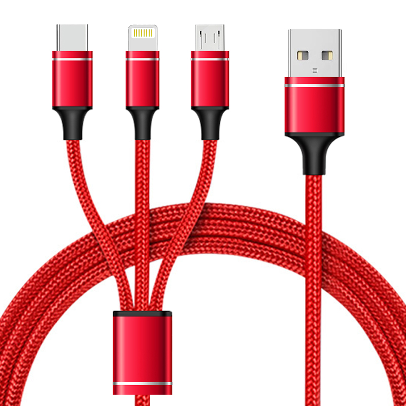 一拖三快充線,安卓/Type-C/蘋果;2.4A安全快充;尼龍編織,更耐用;接頭加固,防開裂;充電快,不彈窗。